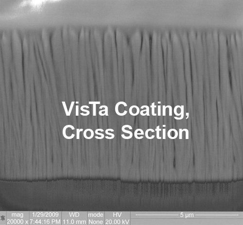 The unique nanostructure of Isoflux's patented VisTa coating enables a number of applications for medical products. In addition to providing enhanced radiopacity and unparalleled flexibility for devices like self-expanding stents, the nanostructure of VisTa (shown at the right) provides an ideal attachment surface to promote bone growth, as well as a narrow channel structure to enable drug loading to fight infection.